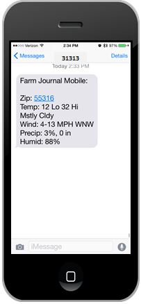 Get important weather information for your ZIP code through Farm Journal Mobile's Weather Updates, which are delivered each morning.